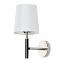 Бра стиля модерн для гостиной, кабинета или спальни имеет размеры 150x310x280 мм. Арматура светильника окрашена в серебрянный и черный цвет. Лампы в комплекте - отсутствуют. В светильнике применяются лампы накаливания или светодиодная LED-лампа. Цвет плафонов - белый, с матовой поверхностью. Материал плафонов - текстиль. Класс электробезопасности - I, степень пылевлагозащиты (IP) - 20. Максимальная мощность лампы (Вт) - 60. Светильник размещается на стене.