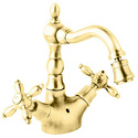 Назначение: для биде • Конструкция: двухрычажный • Монтаж: горизонтальный • Материал: латунь, покрытие - золото • Монтажные отверстия: 3 отверстия • Форма излива: традиционная • Душевая лейка в комплекте: нет • Донный клапан в комплекте: есть