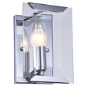 Бра стиля модерн для гостиной, кабинета или спальни имеет размеры 110х200х110 мм. Арматура светильника окрашена в хромовый цвет. Лампы в комплекте - отсутствуют. В светильнике применяются лампы накаливания или светодиодная LED-лампа. Цвет плафонов - неокрашенный, с прозрачной поверхностью. Материал плафонов - хрусталь. Класс электробезопасности - I, степень пылевлагозащиты (IP) - 20. Максимальная мощность лампы (Вт) - 60. Светильник размещается на стене.
