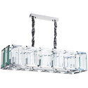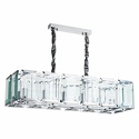 Подвесной светильник стиля модерн для гостиной, кабинета, прихожей или спальни имеет размеры 930x320x750 мм. Арматура светильника окрашена в хромовый цвет. Лампы в комплекте - отсутствуют. В светильнике применяются лампы накаливания или светодиодная LED-лампа. Цвет плафонов - неокрашенный, с прозрачной, рельефной поверхностью. Материал плафонов - стекло. Класс электробезопасности - I, степень пылевлагозащиты (IP) - 20. Максимальная мощность лампы (Вт) - 40. Светильник размещается на потолоке.