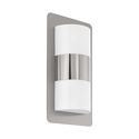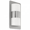 Накладной светильник стиля техно для улицы имеет размеры 180x350x90 мм. Арматура светильника окрашена в серебрянный цвет. Лампы в комплекте - отсутствуют. В светильнике применяются светодиодная LED-лампа. Цвет плафонов - белый, с матовой поверхностью. Материал плафонов - полимер. Класс электробезопасности - I, степень пылевлагозащиты (IP) - IP44. Максимальная мощность лампы (Вт) - 10. Светильник размещается на стене.