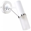 Бра стиля лофт для гостиной, кабинета или спальни имеет размеры 100x215x270 мм. Арматура светильника окрашена в белый и хромовый цвет. Лампы в комплекте - отсутствуют. В светильнике применяются лампы накаливания или светодиодная LED-лампа. Цвет плафонов - белый, с матовой поверхностью. Материал плафонов - стекло. Класс электробезопасности - I, степень пылевлагозащиты (IP) - 20. Максимальная мощность лампы (Вт) - 40. Светильник размещается на стене.