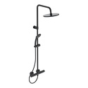 Устройство: душевая система • Смеситель: термостатический • Ручной душ (душевая лейка): размер 100 мм, настройки 1 шт • Верхний душ (тропический): размер 200 мм, настройки 1 шт • Комплектация: ручной душ, верхний душ, смеситель, стойка, шланг, крепление ручного душа