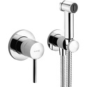 Гигиенический набор Kludi Bozz 389980576 4 в 1 Описание: • встраиваемый смеситель для душа: • внутренняя часть и внешний элемент • гигиенический душ с кнопкой включения воды • не предназначен для длительного перекрывания воды • душевой шланг G 1/2 x G 1/2 x 1250 мм • соединение для шланга с настенным • держателем для душа DN 15