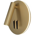 Бра стиля техно для гостиной, кабинета или спальни имеет размеры 140x65 мм. Арматура светильника окрашена в золотой цвет. Лампы в комплекте - светодиодные [LED]. В светильнике применяются светодиодная LED-лампа. Цвет плафонов - золото, с глянцевой поверхностью. Материал плафонов - дюралюминий. Класс электробезопасности - I, степень пылевлагозащиты (IP) - 20. Максимальная мощность лампы (Вт) - 9. Светильник размещается на стене.