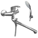 Назначение: ванна+душ • Конструкция: однорычажный • Монтаж: вертикальный • Материал: покрытие - хром • Подводка: жесткая • Монтажные отверстия: 2 отверстия • Форма излива: традиционная • Душевая лейка в комплекте: есть • Держатель для душевой лейки: настенный держатель • Аэратор: есть • Донный клапан в комплекте: есть