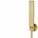 Керамический картридж 35мм, Sedal (Испания) Встроенный пластиковый аэратор Neoperl HONEYCOMB (Германия) для равномерного распределения струи Керамический поворотный переключатель Входит в комплект Лейка 1-функциональная с системой защиты от известковых отложений Шланг металлический 1500 мм, подключение к лейке Фиксированное настенное крепление для лейки Набор для монтажа Материалы Латунь, ABS-пластик, PVD-покрытие "матовое золото"